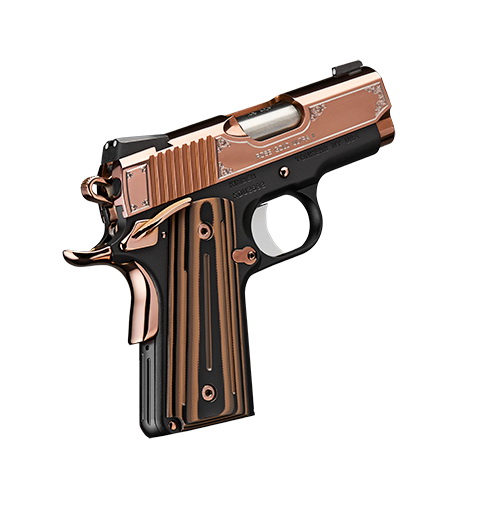 The Kimber Rose Gold Ultra II is a compact 1911-type pistol in 9 mm caliber that stands out for its high functionality, but also for its elegant design with a Rose-Gold PVD coating surface finish with fine decorative engraving, which gives it a luxurious look.
