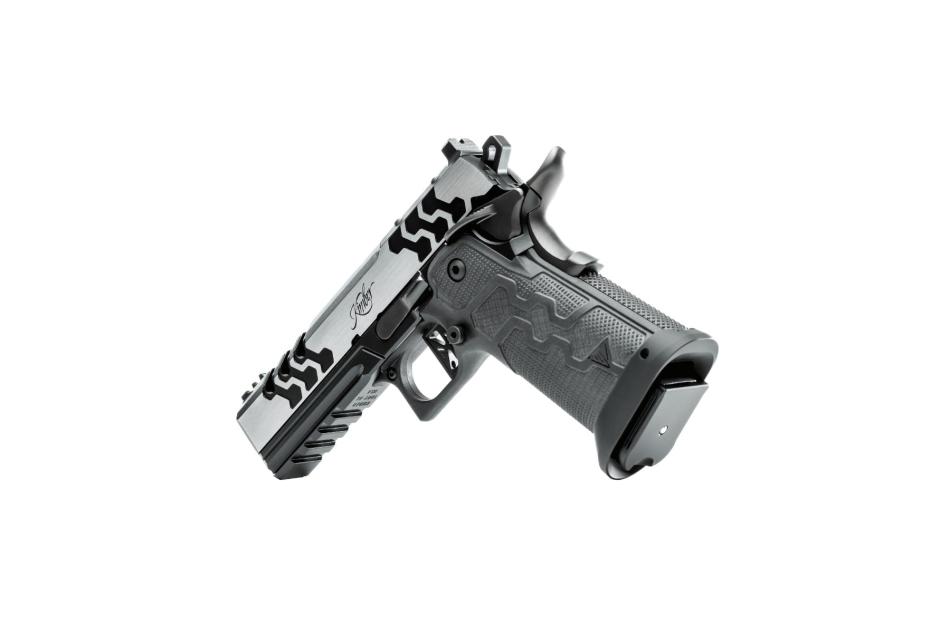 • Caliber: 9x19 • Barrel length: 4.25" (108 mm) • Overall length: 198 mm • Overall height: 146.3 mm • Magazine capacity: 2x 19-round magazine • Weight without magazine: 992 g • Frame material: Stainless Steel with Brushed finish • Slide material: Stainless Steel with Black DLC surface finish • Twist rate (left hand): 1:10" • Sights: front TAG FiberLok 2, SST Cover plate with built in adjustable rear sight • Trigger pull: ca. 3-4 lb, GT Match type • Optics ready: YES, Tag Precision RMR Adapter plate • Grips: MJD composite • Safety: Ambidextrous safety lock