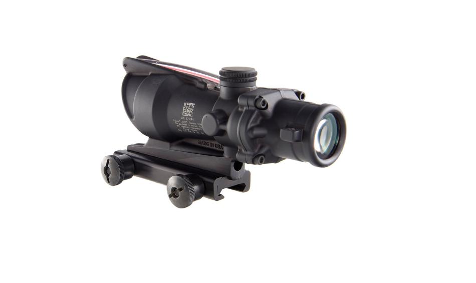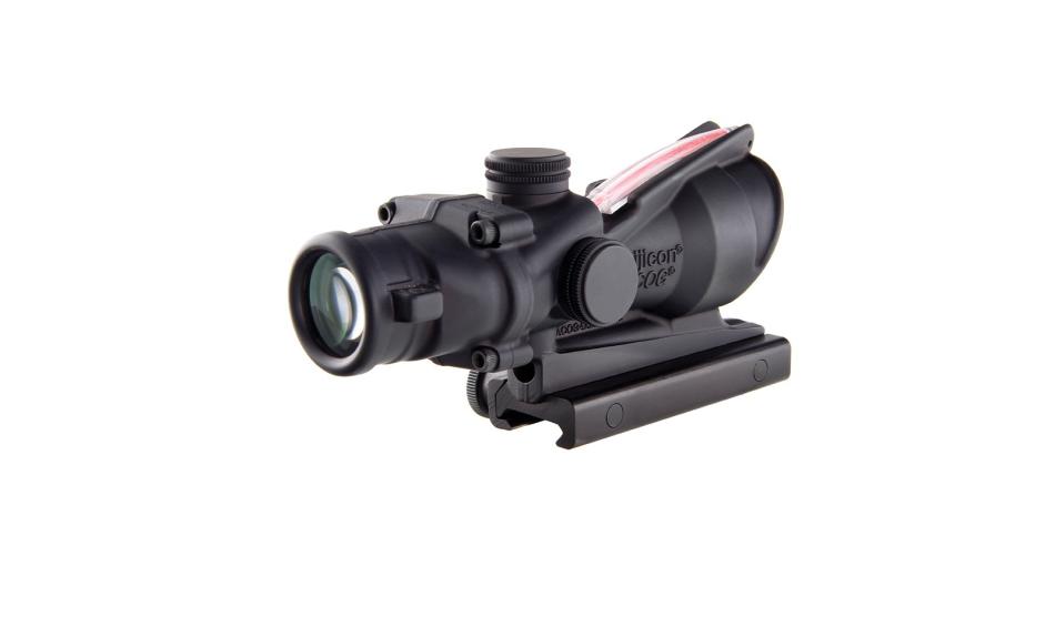 Trijicon ACOG 4×32 Dual Illumination Red Chevron M193 je pevný čtyřnásobný bojový optický zaměřovač s trvalým osvitem osnovy pomocí kombinace vláknové optiky a tritia, které zajišťují jasný a automaticky se přizpůsobující zaměřovací bod ve dne i v noci bez potřeby baterií.