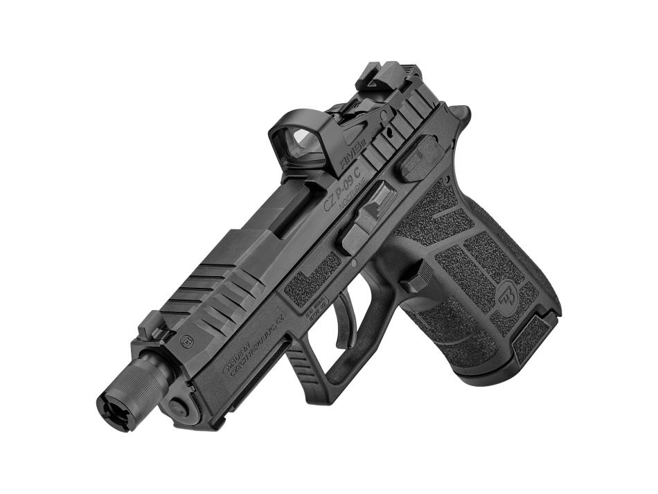 Nové modely CZ P-09 C NOCTURNE v Compact provedení (C) si zachovávají všechny klíčové přednosti předchozí generace CZ P-07/P-09 a některé z nich ještě dále zdokonalují. Přinášejí lepší ergonomii, možnost uchycení kolimátoru přímo na závěr bez montážní destičky, pohodlněji dostupné ovladače a hlaveň se závitem je připravena na montáž tlumiče.