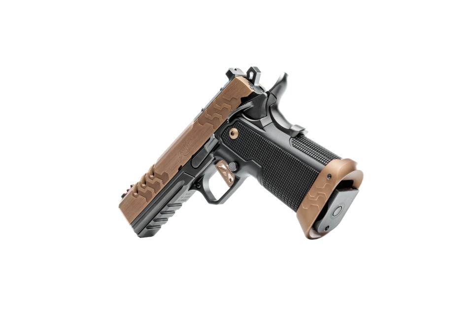 Základ tvoří nerezový rám doplněný o SST ocelový sub-rám s povrchovou úpravou Black DLC, který zvyšuje pevnost konstrukce a odolnost proti opotřebení. Ergonomii podporuje kónický Stan Chen magwell, jenž usnadňuje rychlé a jisté zasunutí zásobníku, a oboustranná manuální pojistka. Šířka rámu činí 3,89 cm.
