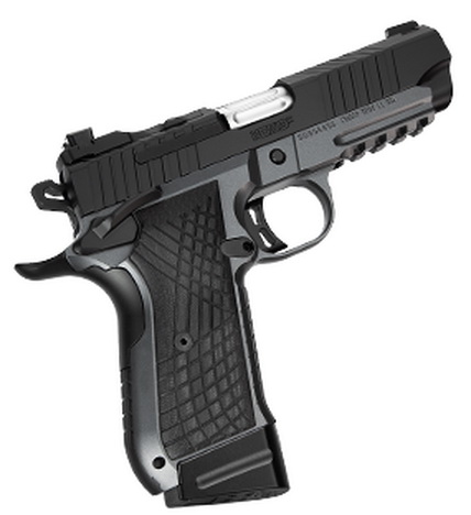Hlaveň má délku 4,09", jedná se o match-grade nerezovou hlaveň s flush-cut 20° korunou a je plně žebrovaná a rampovaná; proprietární proces vrtání zajišťuje konzistentní přesnost a stoupání drážek je 1:10 vlevo. Mechanika zahrnuje kostěný čtvercový zdrsněný kohout, vratná pružina s předpětím přibližně 7,7 kg (17 lb). V balení jsou dva zásobníky po 15 nábojích, lze volitelně dokoupit i 18ranný zásobník. Spoušť je továrně nastavena na přibližně 1,6–2 kg pro čistý a předvídatelný chod. Střenky jsou šedo-černé G10 Crosshatch, které spolu s texturou rámu zajišťují pevný a jistý úchop i v náročných podmínkách.