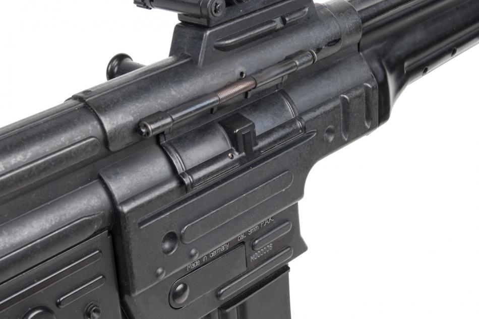 Celková délka zbraně činí 937 mm, délka hlavně je 16" (436 mm) a hmotnost dosahuje přibližně 4 680 g, což velmi přesně odpovídá proporcím a pocitu originální předlohy. Díky originální věrnosti rozměrům, kompatibilitě s původním příslušenstvím a skutečnosti, že je zbraň vyrobena v Německu, představuje tato replika ideální volbu především pro sběratele, nadšence vojenské historie a fanoušky ikonických zbraní 20. století, kteří hledají autentický a technicky kvalitní exponát.