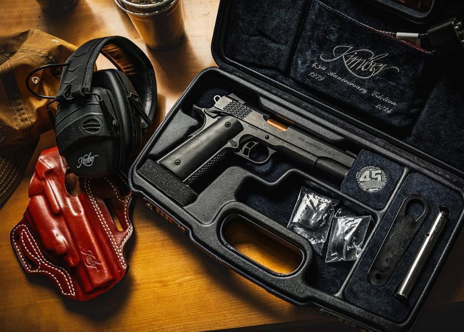 Overall, the Kimber 45th Anniversary combines traditional 1911 construction with hand-finished details and premium materials, making it both a collectible limited-edition artifact and a fully functional pistol suitable for demanding users.