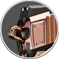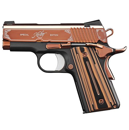 The Kimber Rose Gold Ultra II is a compact 1911-type pistol in 9 mm caliber that stands out for its high functionality, but also for its elegant design with a Rose-Gold PVD coating surface finish with fine decorative engraving, which gives it a luxurious look.