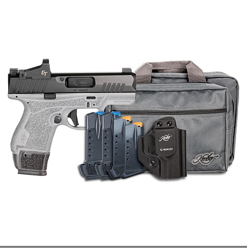 The R7 MAKO is Kimber's first polymer framed, striker fired, high-capacity, subcompact 9mm Luger handgun with additional magazines and bag in this Bundle set. Gray colored variant with installed collimator and with 15-round magazines.