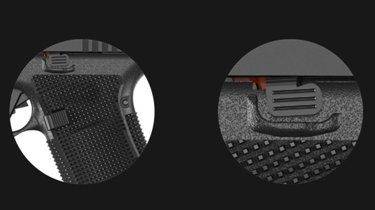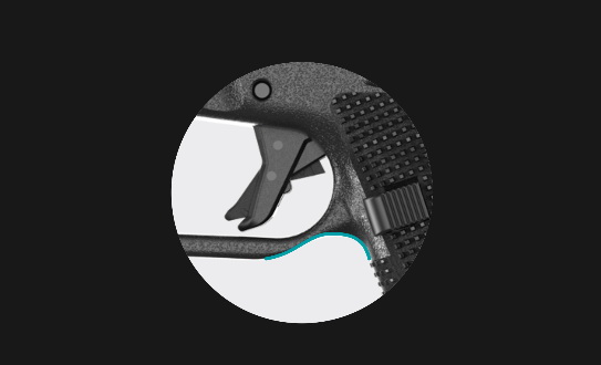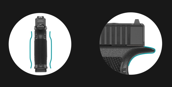 Každá pistole GLOCK Gen6 je vybavena plochou spouští, která zajišťuje konzistentní pozici prstu a rovnoměrný, předvídatelný chod. Zkrácená vzdálenost ke spoušti umožňuje pohodlné ovládání střelcům s různě velkou rukou a společně se dvěma velikostmi výměnných hřbetů rukojeti nabízí skutečně univerzální ergonomii.