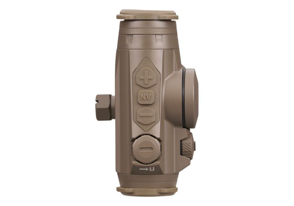 Robustní konstrukce je uzpůsobena náročným podmínkám, přičemž uživatel má k dispozici volbu mezi devíti denními a třemi NV úrovněmi podsvícení. Zaměřovací systém Quad Ballistic Circle Dot umožňuje flexibilní použití pro různé typy zbraní i situace. Kolimátor je vybaven horním ovládáním s funkcí NV Override a systémem MOTAC, který automaticky aktivuje nebo uspává zaměřovač podle pohybu, což prodlužuje životnost napájení.