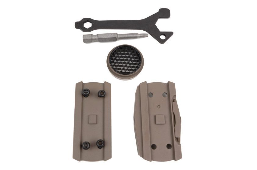 Standardně jsou dodávány dvě výškové varianty montáže, průhledné krytky čoček, neprůhledná přední krytka a antireflexní ARD filtr Kill-Flash. Napájení zajišťuje baterie CR2032 s výdrží až 50 000 hodin. Tělo kolimátoru má délku 67,5 mm, výšku 62,5 mm, šířku 50 mm a hmotnost 179 g. Optika s průměrem 20 mm a nulovým zvětšením (1×) nabízí 100 MOA rozsah nastavení výšky i stranové korekce.
