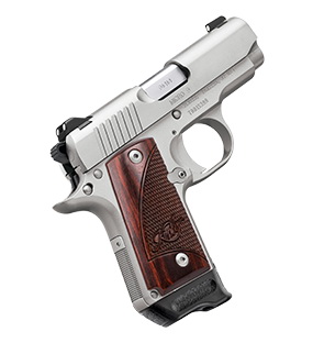 MICRO 9 Stainless Rosewood RTC-K Bundle zvýhodněná sada obsahující nerezovou pistoli ráže 9 mm, 2 zásobníky na 7 ran, a taktické pouzdro UM Tactical Ambi.