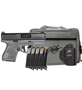 Bundle set obsahuje: 4 zásobníky na 10 nábojů; 1 flush zásobník na 10 nábojů; pouzdro Mission First Tactical Kydex a značkovou tašku Kimber range bag.