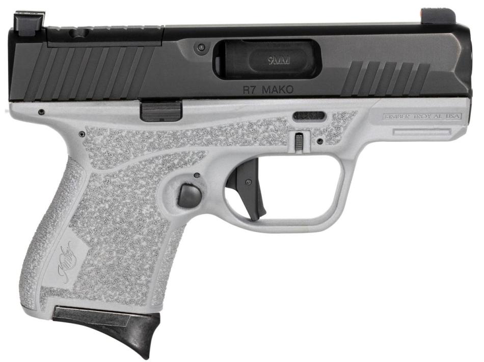 R7 MAKO je první vysokokapacitní subkompaktní 9x19 samonabíjecí pistole s polymerovým rámem, přídavnými zásobníky a brašnou v sadě. Varianta v šedé barvě se zásobníky na 13 ran.