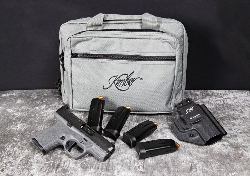 Bundle set obsahuje: 3 zásobníky na 13 nábojů; pouzdro Mission First Tactical Kydex a značkovou tašku Kimber range bag.